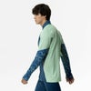 ・両面使いできるダブルフェイス生地のため、袖下から脇にかけて杢調のアクセントを加えています。