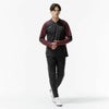 ・袖や脇のパーツにはツートーンのピンストライプ生地を採用。動きの中で印象的な見栄えを演出。