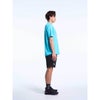 ●オールシーズン、どんなスポーツシーンにも合わせやすいプラT。少しゆったりとしたシルエット。素材はリサイクルポリエステル100%のドライメッシュを採用。