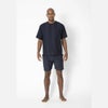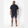 ●リサイクルポリエステルのクールマックス素材とコットン素材で作られたジャガードストライプ生地を使用。移動着や普段着として最適