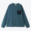 配色ポケットをワンポイントとした長袖Tシャツ。
