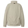 表地はコットンライクな表情のタスランナイロンを使用。フッ素化合物を含まないはっ水剤を使用したはっ水加工を施しており、多少の雨や汚れに対応します。裏地は肌離れのよいポリエステルメッシュ。大容量のマチ付きポケットは、中身が落ちにくいように面ファスナー式のフラップ付き。右胸のハーフドーム型ファスナーポケットは、貴重品の収納に便利です。背面にも大容量のマチ付きポケットを配置。襟にフードを収納できるビルトインフード仕様です。