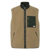 シンプルでゆったりしたシェイプのベストは、配色が効いたデザイン。布帛、フリース双方の両サイドにファスナーポケットがあり、ポケット内部のアジャスターで裾のフィット感が調節できます。キャンプなどのアウトドアシーンからタウンユースまで、さまざまな場面で活用できるアイテムです。