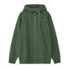 乾きやすさを考慮し、リサイクルポリエステルを混紡しています。フード部分のロゴは立体刺繍で表現。