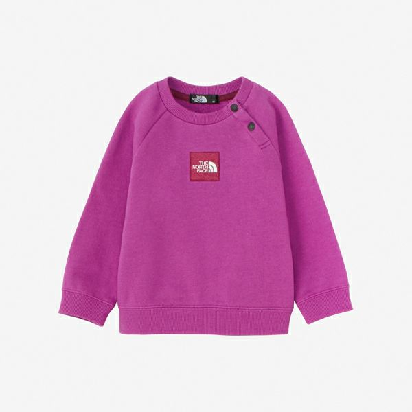 なめらかな風合いの生地で、袖口と裾はフィット感のよいリブ仕様。縫い目が肩に干渉しにくいラグラン袖を採用しています。脱ぎ着がしやすいよう、左肩ドットボタン仕様。フロントに配置した刺繍のスクエアロゴがデザインのアクセントになっています。