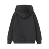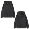 フードには立体刺繍で大きくロゴを配置して、後ろ姿のアクセントにしています。親子でお揃いのコーディネートが楽しめる、大人共通デザインです。