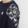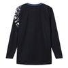 肩口のグラフィックプリントと袖口の配色がデザインアクセントになっています。