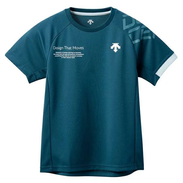 肩部分にDESCENTEグラフィックを配置した半袖バレーボールシャツです。