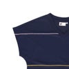 ●すっきりとしたVネックのゲームシャツはカラフルなピコパイピングテープがアクセントです。素材は汗染み防止素材なのでどんなに動いても爽やかです。セットアップのようにワントーンでコーディネートがおすすめです。