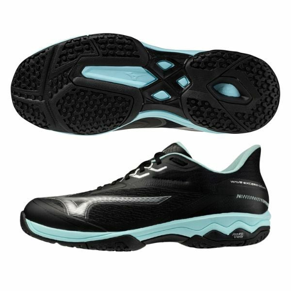 ミズノ ウエーブエクシードコート SW OC 61GB251909 テニスシューズ 【クレー/砂入り人工芝(オムニ)コート】スーパーワイド(4E) 09:ブラック×ターコイズ