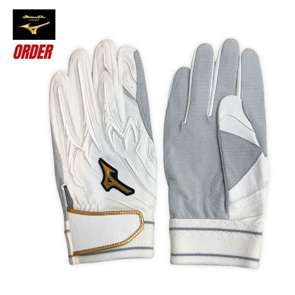 ミズノプロ シリコンパワーアーク オーダー手袋 1EJEA74000 野球 バッティンググローブ(両手用) WHTWHT:ホワイト×ホワイト