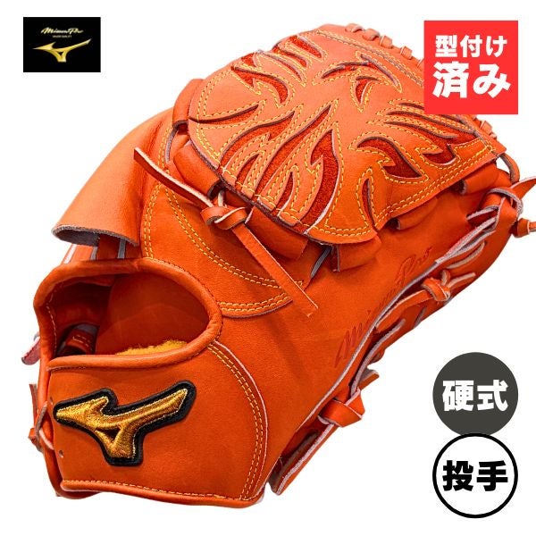 【湯もみ加工済み / 即使用可能】ミズノプロ 硬式野球グローブ 投手用(ヨコ型) 1AJGH31211-52 硬式グラブ 52:スプレンディッドオレンジ