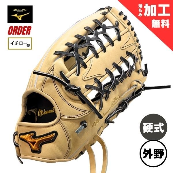 ミズノプロ オーダー 限定 硬式 野球グローブ グラブ 1AJGH74350 外野手用(イチローモデル/高校) / 右投用 80:ブロンド