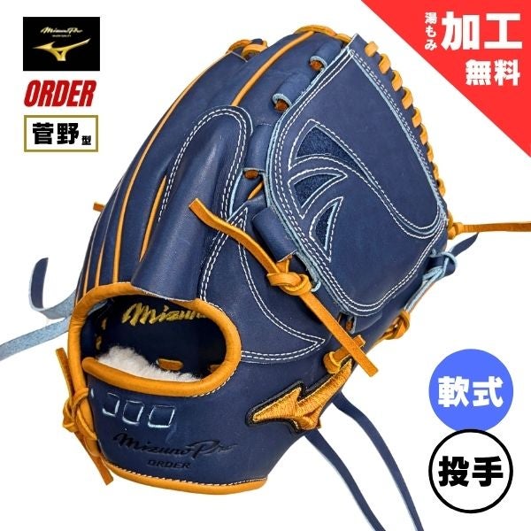 ミズノプロ MizunoPro オーダー 軟式野球グローブ 1AJGR84150 投手用(ピッチャー/菅野智之5Dモデル) 軟式グラブ 29:ダークブルー×USAコルク