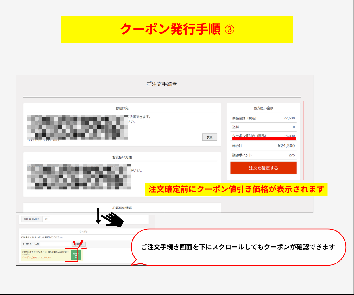 ※クーポン利用上の注意 注文時にクーポン利用上限に達している場合、クーポンのご利用はできません。 クーポン対象商品の商品合計金額から値引きいたします。商品をカートに入れた後、決済画面にて確認ができます。